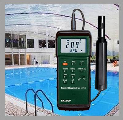 میزان اکسیژن محلول در آب از پارامتر های مهم در استخر می باشد که اینکار با دستگاه اکسیژن متر در حدود چند دقیقه امکان پذیر می باشد .این دستگاه علاوه بر اکسیژن محلول ، میزان اکسیژن آزاد و دما را به کاربر نشان می دهد.همچنین از دیگر امکانات آن اتصال به کامپیوتر برای ذخیره اطلاعات و آنالالیز و همچنین انجام کارهای آزمایشگاهی و تحقیقاتی مناسب است.