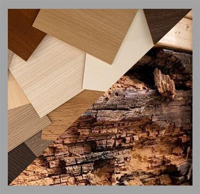 - طبیعی (چوبی): برای تزیین و زیبایی سطوح تخته خرده چوب می توان از آن روکش های چوبی (طبیعی) مانند: گردو، راش،.....استفاده کرد. این تخته بیشتر در جاهایی که تزییین سطوح مورد نظر باشد، مورد استفاده قرار می گیرد، مانند: دکوراسیون داخلی، صفحه میز و کابینت