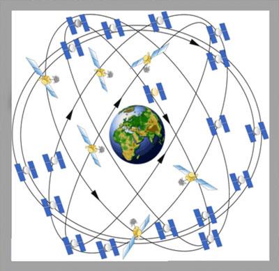 این سیستم مجمو عه ای از ۲۷ ماهواره است که به دور زمین در حال چرخشند. ۲۴ ماهواره در حال کار هستند و ۳ ماهواره اضافی هم هنگام بروز مشکل برای هر کدام از ماهواره های اصلی فعال می شوند. فاصله ماهواره ها تا زمین حدود ۱۲۰۰۰ مایل است. سرعت این ماهواره ها معادل ۷۰۰۰ مایل در ساعت می باشد. هر ماهواره دقیقا طی ۱۲ ساعت یک دور کامل بدور زمین می گردد. سرعت هریک ۷۰۰۰ مایل بر ساعت است. این ماهواره ها نیروی خود را از خورشید تامین می کنند. همچنین باتری هایی نیز برای زمان های خورشید گرفتگی و یا مواقعی که در سایه زمین حرکت می کنند به همراه دارند. راکت های کوچکی نیز ماهواره ها را در مسیر صحیح نگاه می دارد. به این ماهواره ها NAVSTAR نیز گفته می شود.