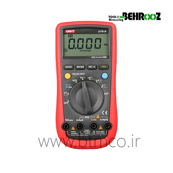 مولتی متر دیجیتال مدل UT61A ساخت کمپانی بزرگ هنگ کنگی UNIT توانایی اندازه گیری ولتاژ، جریان، مقاومت، خازن و دوره کاری را دارا می باشد. از قابلیت های دیگر آن می توان به رنج دستی، تست دیود، تست پیوستگی، DATA HOLD و قابلیت نمایش MAX/MIN اشاره کرد. یونیتی UT61A, قابلیت اندازه گیری دقیق و سریع  جریان AC/DC تا 10 آمپر ؛ ولتاژ  AC تا 750 ولت ؛ و ولتاژ DC تا 1000 ولت را دارد. شرکت تجهیزات اندازه گیری و ابزار دقیق بهروز ارائه دهنده و تامین کننده به عنوان نمایندگی یونیتی در ایران تامین کننده و ارائه دهنده انواع محصولات برند یونیتی با بهترین و نازلترین قیمت می باشد. جهت کسب اطلاعات بیشتر از قیمت مولتی متر یونیتی UT61A, خرید مولتی متر UT61A با کارشناسان فنی ما در ارتباط باشید.