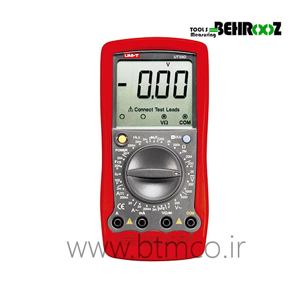 مولتی متر دیجیتال مدل UT58D/E از سری مولتی متر های میان رده برند UNI-T است که با انتخاب آن می توانید ولتاژ، جریان، مقاومت، خازن، فرکانس و سلف را اندازه گیری نمایید. از ویژگی های آن می توان به رنج دستی، تست دیود، تست ترانزیستور، DATA HOLD و خاموشی اتومات اشاره کرد. مولتی متر یونیتی یکی از بهترین و قیمت مناسبترین مولتی متر موجود در بازار می باشد. شما می توانید برای اطلاعات بیشتر از قیمت مولتی متر, راهنمای خرید مولتی متر با کارشناسان فنی ما در ابزار دقیق بهروز در ارتباط باشید.