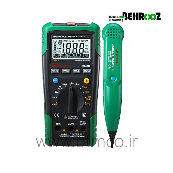 مولتی متر مستک مدل MS8236, یک مولتی متر دیجیتال که علاوه بر اندازه گیری پارامترهای الکتریکی قابلیت تست و عیب یابی خطوط تلفن و کابل ها را دارد.این محصول شامل یک دستگاه اندازه گیری و یک پراب ردیاب خط می باشد و مخصوص افرادی است که به صورت فیزیکی با خطوط تلفن و شبکه های کامپیوتری سروکار دارند. همچنین این مولتی متر مستک مدل MS8236 توانایی اندازه گیری ولتاژ AC و DC تا 600 ولت و جریان AC و DC را تا 10 آمپر دارد. از دیگر ویژگی این محصول می توان به داشتن کلید DATA HOLD برای ثبت کردن مقادیر اندازه گیری شده و همچنین دارای نور پس زمینه مناسب برای مکانهایی با نور کم می باشد. برای مشاهده انواع