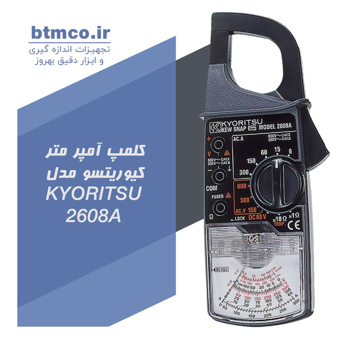 کلمپ آمپر متر کیوریتسو مدل KYORITSU 2608A قابلیت اندازه گیری جریان متناوب ، ولتاژ متناوب و مستقیم ، مقاومت را دارد. رنج ولتاژ مستقیم جهت اندازه گیری ولتاژ باتری و منبع تغذیه طراحی شده است.با استفاده از پراب دمایی مجزا می توان دما را نیز اندازه گیری کرد.