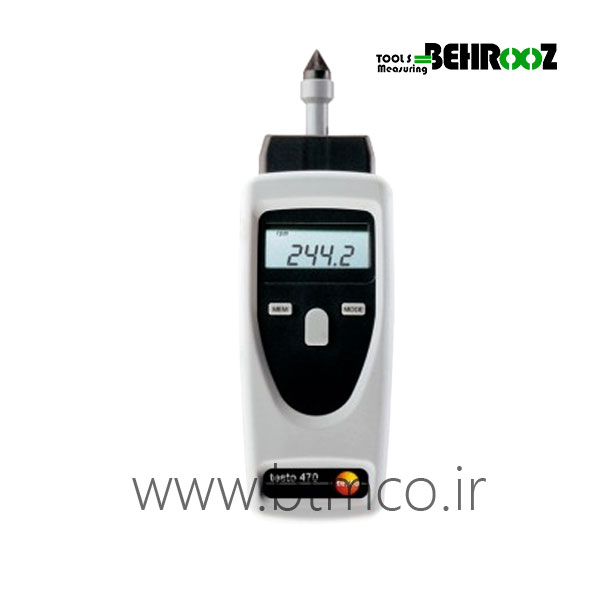 تاکومتر مکانیکی و نوری تستو مدل TESTO 470 با کد محصول 0563470 کاربری راحت و آسان مناسب برای اندازه گیری دور موتور ها ، شفت ها ، فن ها و ... می باشد.محدوده اندازه گیری وسیعی را می تواند اندازه گیری کند.صفحه نمایشگر بزرگ LCD دارد و با داشتن نور پس زمینه به راحتی می توان این دستگاه را در مکان های تاریک مشاهده کرد. بررسی قیمت این محصول در وب سایت تجهیزات اندازه گیری و ابزار دقیق بهروز