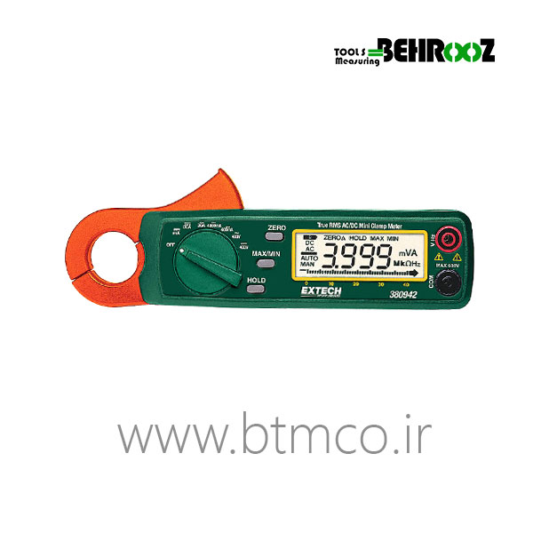 کلمپ آمپر متر اکستک 380942 با استفاده از آمپر متر کلمپی جهت اندازه گیری جریان،دیگر نیازی به قطع کردن سیم حامل جریان نمی باشد.فقط کافیست سیم حامل جریان را بین دو فک کلمپ قرار داده و با بسته شدن فک های کلمپ جریان عبوری از سیم حامل جریان را مشاهده نمایید. این دستگاه ها با استفاده از اثر هال جریان را اندازه گیری می کنند. حساسیت و دقت بالا از نکات مثبت این کلمپ ها می باشد.