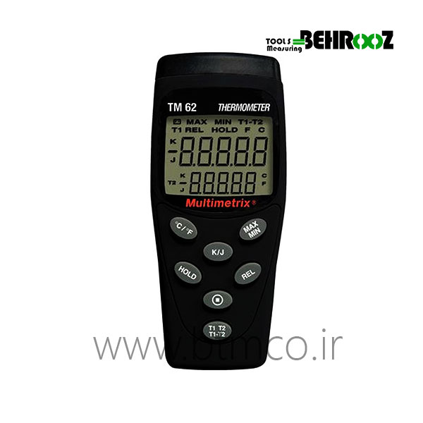 ترمومتر تماسی RTD K و J دو کانال مولتی متریکس MULTIMETRIX TM 62. دو کانال، قابلیت اتصال ترموکوپل های K و J، قابلیت انتخاب نمایش دما بر اساس فارنهایت و سلسیوس. آموزش رایگان به همراه ضمانت نامه کتبی را از شرکت بهروز بخواهید.