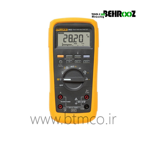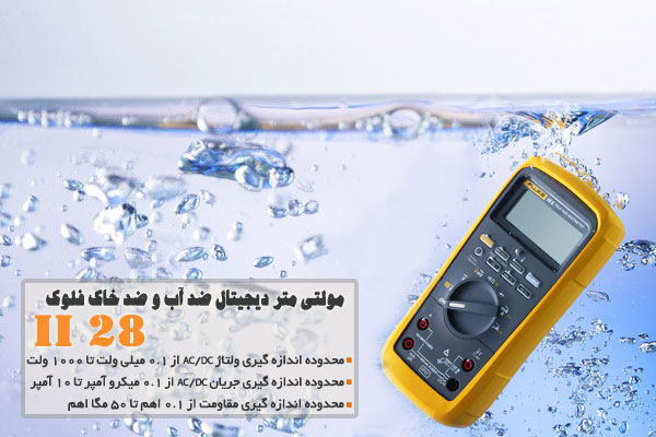 مولتی متر دیجیتال ضد آب و ضد خاک فلوک 28 II دستگاهی است برای مشاهده و اندازه گیری چندین کمیت الکتریکی از قبیل ولتاژ یا اختلاف پتانسیل و مقاومت الکتریکی و تست قطعی قطعات و ... که میتوان با آن سلامت قطعات مانند دیود و ... و نیز مشخصات یک قطعه را ارزیابی کرد. آموزش رایگان را به همراه دو سال گارانتی از شرکت تجهیزات بین المللی بهروز بخواهید.