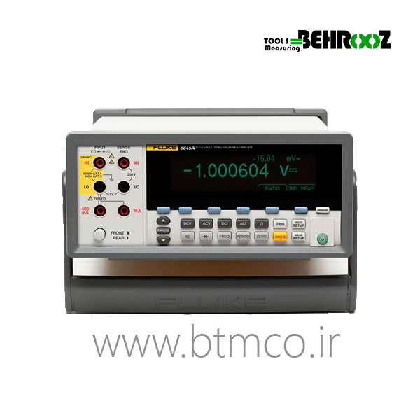 مولتی متر دیجیتال رومیزی فلوک 8845A دستگاهی است برای مشاهده و اندازه گیری چندین کمیت الکتریکی از قبیل ولتاژ یا اختلاف پتانسیل و مقاومت الکتریکی و تست قطعی قطعات و ... که میتوان با آن سلامت قطعات مانند دیود و ... و نیز مشخصات یک قطعه را ارزیابی کرد. آموزش رایگان را به همراه دو سال گارانتی از شرکت تجهیزات بین المللی بهروز بخواهید.