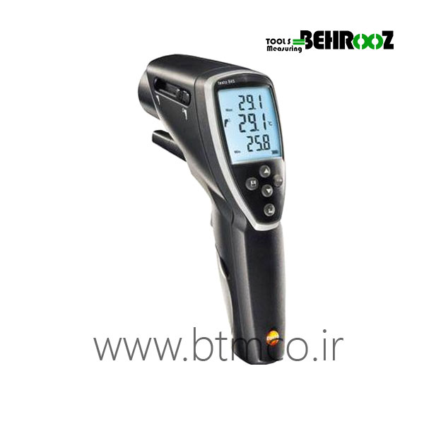 ترمومتر لیزری، ترمومتر تفنگی و دماسنج لیزری تستو مدل TESTO 845. قابلیت اندازه گیری دما از -35 درجه تا 950 درجه سانتی گراد را دارد. این محصول دارای نشانگر لیزری 4 نقطه ای برای اندازه گیری دقیق تر دما است . برای کسب اطلاعات بیشتر از قیمت, کاربرد و خرید با کارشناسان فنی ما در شرکت تجهیزات اندازه گیری و ابزار دقیق بهروز در ارتباط باشید.