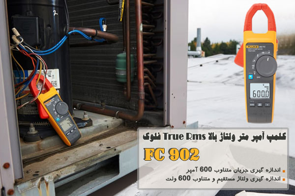 آموزش تصویری و نحوه کار با کلمپ آمپر متر ولتاژ بالا True Rms فلوک 902 FC
