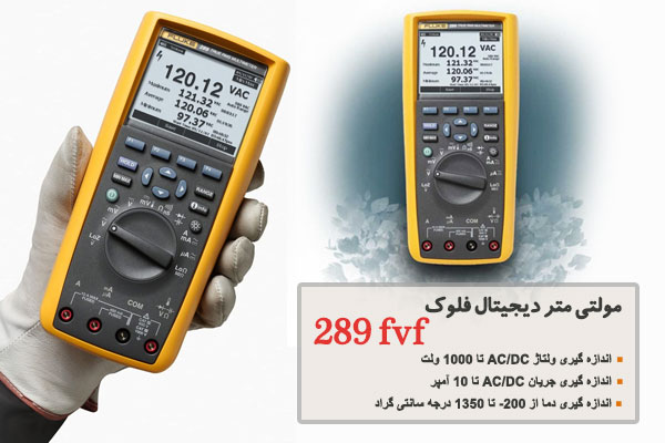 مولتی متر دیجیتال مدل fluke 289 fvf یک مولتی متر آمریکایی صنعتی با کیفیت، به منظور عیب یابی و استفاده جهت تعمیر و نگهداری سیستم های الکتریکی می باشد. مولتی متر fluke با قابلیت ذخیره کردن و بازبینی اطلاعات به صورت گرافیکی می تواند موارد اندازه گیری شده را به صورت خیلی سریع و فوری آنالیز کند. با استفاده از رابط IR3000 FC و نرم افزار موبایلی می توان به صورت بیسیم مولتی متر را به سیستم های اندروید و IOS متصل کرد. حافظه دستگاه قابلیت ذخیره تا 15000 داده را دارا می باشد و بدون نیاز به کامپیوتر می توان تمام اطلاعات ذخیره شده را مشاهده و بررسی کرد. جهت استعلام قیمت قیمت مولتی متر فلوک 289fvf با کارشناسان ما تماس بگیرید.