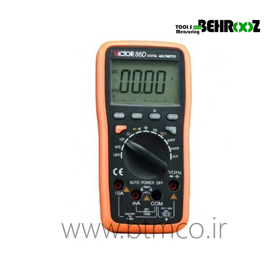 مولتی متر دیجیتال پرتابل ویکتور VICTOR-86D دستگاهی است برای مشاهده و اندازه گیری چندین کمیت الکتریکی از قبیل ولتاژ یا اختلاف پتانسیل و امپراژ یا جریان و مقاومت الکتریکی و تست قطعی قطعات و .... که میتوان با آن سلامت قطعات مانند دیود و ... و نیز مشخصات یک قطعه را ارزیابی کرد. آموزش رایگان به همراه دوسال گارانتی را از شرکت تجهیزات بین المللی بهروز بخواهید.