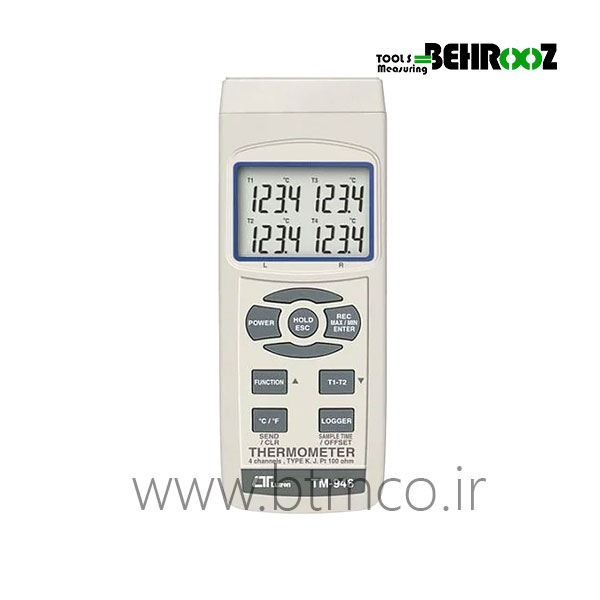 ترمومتر تماسی RTD دیجیتال چهار کاناله لوترون LUTRON TM-946. با استفاده از دما سنج های ترموکوپل دار و PT100 می توان دمای بالایی از سطوح را اندازه گیری کرد. همچنین بعضی از دستگاه ها قابلیت اتصال چندین پراب دمایی را دارا می باشند و می توان به طور همزمان دمای چندین نقطه را بر روی صفحه نمایشگر مشاهده کرد. سرعت و زمان اندازه گیری دما با استفاده از ترموکوپل نسبت به دما سنج های لیزری بسیار کمتر است. آموزش رایگان به همراه ضمانت نامه کتبی را از شرکت بهروز بخواهید.