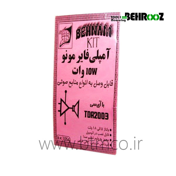 آمپلی فایر مونو 10 وات بهنام کیت از آي سي TDA 2003 بهرهگيري می کند. اين آي سي از سالها پيش وارد بازار الكترونيك شده و مصرف روز افزون آن در دستگاههاي مختلف نشانه بالا بودن كيفيت كار آن است. اين آمپليفاير كه در نوع خود بينظير است داراي ورودي حساس، مصرف بيكاري پايين و صدايي شفاف و هايفيدليتي است.