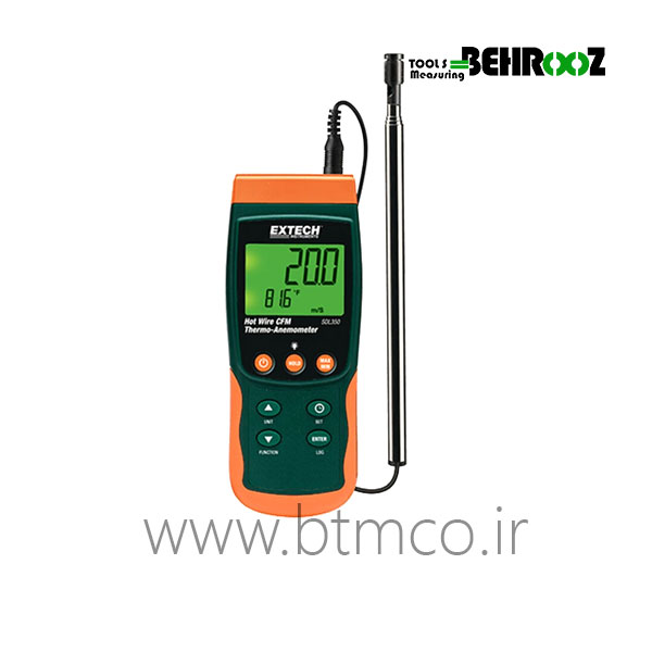 دستگاه دبی سنج باد ، بادسنج اکستچ Extech SDL350 با مشخصات فنی زیر جزء بی نظیرترین دستگاه های اندازه گیری سرعت باد است قابلیت اندازه گیری سرعت باد ، قابلیت اندازه گیری دما تا 1300 درجه با پراب از بارزترین ویژگی های این محصول می باشد. نمایندگی پخش انواع بادسنج و هات وایر در ایران ، شرکت تجهیزات اندازه گیری و ابزار دقیق بهروز می باشد. نمایندگی رسمی و انحصاری محصولات اکستج EXTECH در ایران شرکت تجهیزات اندازه گیری و ابزار دقیق بهروز می باشد .