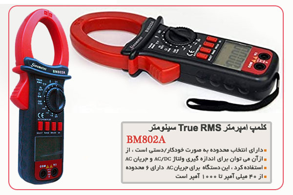 کلمپ امپرمتر True RMS سینومتر مدل BM802A دارای قابلیت اندازه گیری ولتاژ متناوب و مستقیم و جریان AC با ویژگی TRUE RMS، ظرفیت خازنی و تست دیود همچنین دیوتی سایکل سایر پارامتر های الکتریکی می باشد. فروش ویژه کلمپ امپرمتر True RMS سینومتر مدل BM802A و لیست قیمت انواع کلمپ امپرمتر True RMS سینومتر در سایت اینترنتی بهروز.