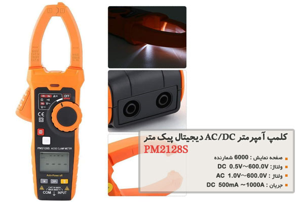 کلمپ آمپرمتر AC/DC دیجیتال پیک متر مدل PM2128S دستگاهی پرکاربرد و خوش قیمت با قابلیت اندازه گیری ولتاژ و جریان AC/DC، مقاومت، فرکانس ، ظرفیت خازن و دما می باشد. جهت تحلیل، بررسی و مقایسه مشخصات فنی انواع کلمپ آمپرمتر پیک متر و ثبت سفارش آنلاین به کارشناسان فنی مجموعه بهروز در واحد فروش تماس حاصل فرمایید.