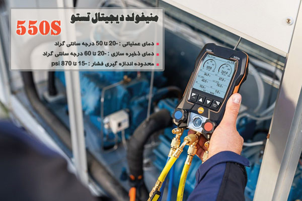 منیفولد دیجیتال تستو 550s, با کد محصول 05645500 با بلوتوث و بلوک سوپاپ دو طرفه دارای نمایشگر گرافیکی بزرگ، محفظه فشرده و مستحکم، منوهای اندازه گیری و برنامه هوشمند تستو است. این محصول با کفیت با داشتن عملکرد هوشمند برای اندازه گیری سریع و آسان می باشد. تستو 550s برای راه اندازی , سرویس و نگهداری سیستم های تبرید و تهویه مطبوع و پمپ های حرارتی مورد استفاده قرار می گیرد. برای کسب اطلاعات بیشتر از قیمت, خرید و کاربرد با کارشناسان فنی ما در شرکت تجهیزات اندازه گیری و ابزار قیق بهروز در ارتباط باشید.