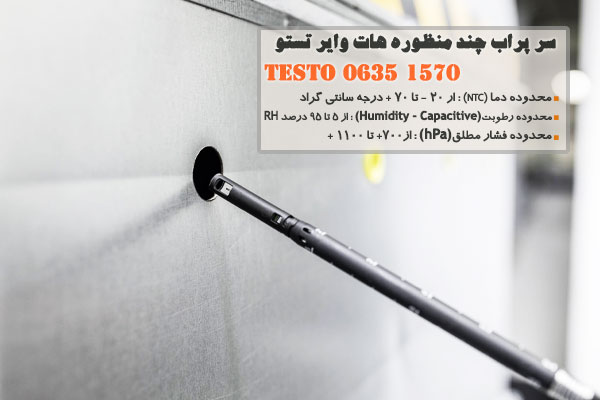 سر پراب چند منظوره هات وایر تستو مدل Testo 0635 1570 دارای رنج اندازه گیری 20- تا 70+ درجه سانتی گراد میباشد. شرکت بازرگانی بین المللی بهروز نماینده شرکت تستو در ایران خرید انواع پراب دما و رطوبت تستو را تضمین میکند. شماره سفارش Order-Nr. 0635 1570