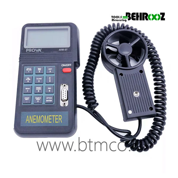 فلوسنج باد پرووا مدل AVM-07, یک دستگاه پرتابل از برند PROVA تایوان, که برای بررسی تهویه هوا و سیستم های گرمایشی، اندازه گیری سرعت هوا، سرعت باد، دما، تست های محیطی و غیره استفاده می شود. از ویژگی باد سنج AVM-07 قابلیت ثبت اطلاعات تا ۲۰۰۰ مورد و اتصال به pc توسط کابل و نرم افزار مربوطه می باشد.