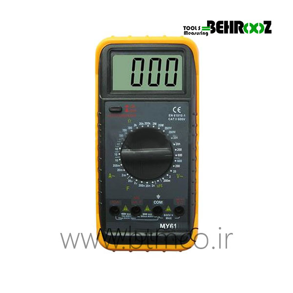مولتی متر دیجیتال بستون MY61 همانگونه که از نامش پیداست دستگاهی است با قابلیت اندازه گیری چند پارامتر مختلف که این مولفه ها در علوم الکتریکی و الکترونیکی بسیار مهم و کاربردی می باشد. امروزه این دستگاه با دقت بسیار بالا می تواند پارامتر هایی از جمله مقاومت، جریان، ولتاژ، ظرفیت خازنی، فرکانس و حتی دما را اندازه گیری و ثبت کند. آموزش رایگان را به همراه دو سال گارانتی از شرکت بهروز بخواهید.