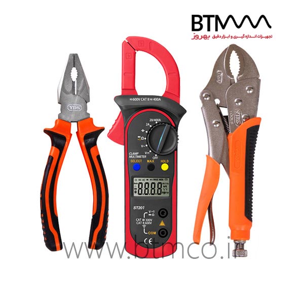 پک کلمپ آمپر متر و انبر قفلی و انبر دست، این پک شامل کلمپ آمپرمتر دیجیتالی مدل ST201 و انبر قفلی وای دی اس مدل YDS-1710 سایز 10 اینچ و انبردست وای دی اس کد N1 سایز 6/2 اینچ می باشد.