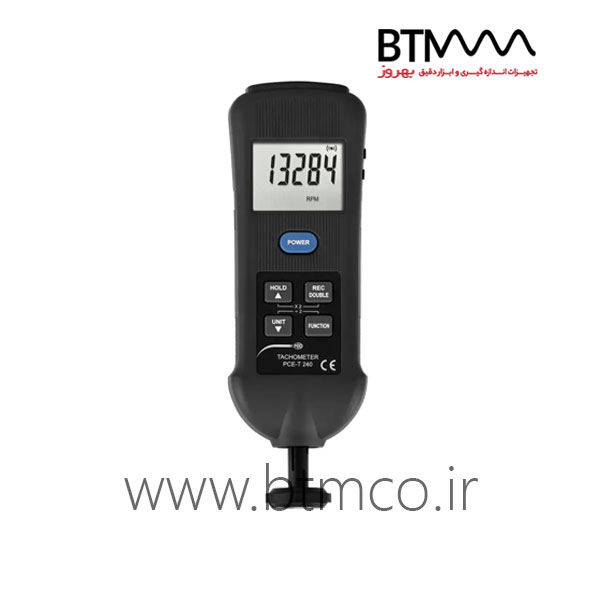 دورسنج pce مدل PCE-T 240، یک ابزار تاکومتر حرفهای با قابلیت اندازهگیری سرعت به دو صورت تماسی و نوری است. این دستگاه با دامنه اندازهگیری تماسی از 0.5 تا 99,999 دور در دقیقه (RPM) می باشد.